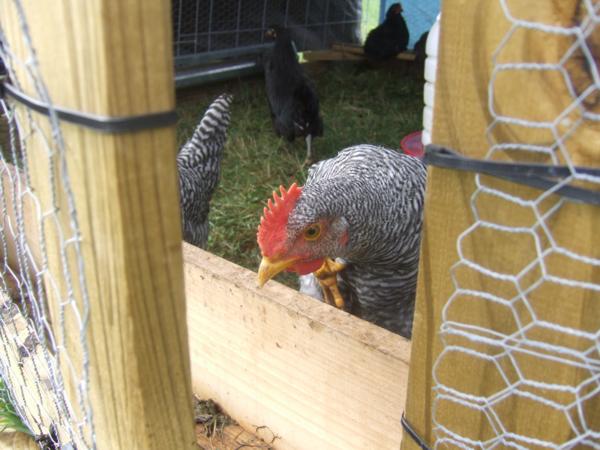 January 1st, 2010 by Blogging FarmerThe 1×6 at the bottom of the door prevents this chicken from sticking its neck in the path of the door.